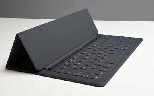 The Smart Keyboard combines an array of new technologies and materials to create a keyboard like no other. It’s a full-size keyboard that’s fully portable, and connects to iPad Pro with the Smart Connector, an innovative new interface that allows for a two-way exchange of power and data. Just attach the Smart Keyboard and start typing. And when you’re done it folds together to create a slim, lightweight cover.